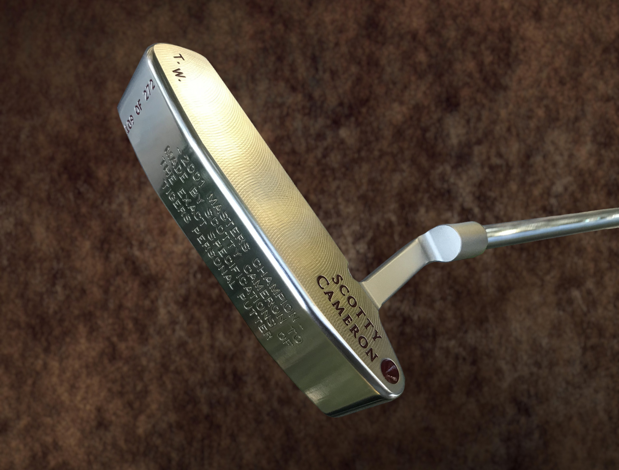 This is a Newport II model "Victory" putter made to commemorate the 2001 Masters win by Tiger Woods.